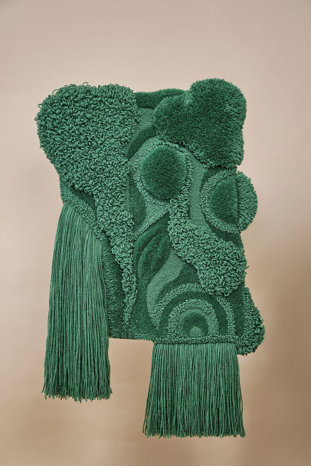 Kuvassa oleva ryijy on valmistettu Metsänvihreästä 100%-villalangasta.